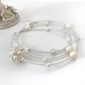 パールとシードビーズで球体に編み込んだ