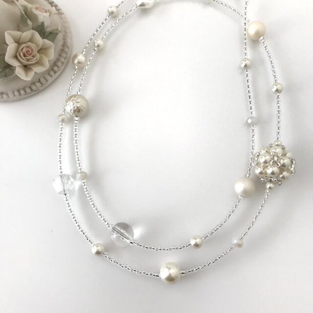 #ネックレス #ビーズ #パール #上品 #白 #大ぶり #ホワイト #通年 #シンプル #母の日 #一連 #スノーホワイト #デイリー #プチギフト #オーロラ #通勤 #バロックパール #marigold #ロングネックレス #誕生日 #ギフト #ビーズアクセサリー #ビーズボール #清楚 #キラキラ #パールボール #丸 #エレガント #ビーズステッチ #ビーズ編み #ビーズジュエリー #グラデーション #モノトーン #大人 #クリア #透明感 #春 #夏 #秋 #冬 #結婚式 #フォーマル #カジュアル
