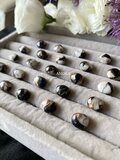 *石によりホワイトよりブラックよりゴールド強め、濃い、淡い等本当に素敵な個性揃いなため、お客様自身でお好みの石を選んでいただきたく、A〜Xまでの写真を記載しておりますので、ご注文の際は必ず【サイズ】【アルファベット】を備考欄にてお知らせください。