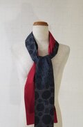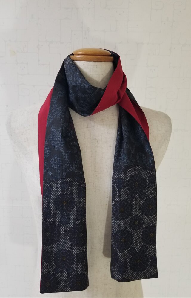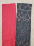 大島紬は二種類をパッチワークしました。胴裏は少し落ち着いた赤です。
