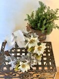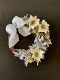 クリスマスはポインセチアが定番ですが、白いポインセチアを使用して北欧風クリスマスリースを制作しました。