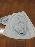 ドロップショルダーのたっぷりパフスリーブですが、切り替え部分をタックにしてありますので、ボリュームが押さえられてスッキリ見えます。