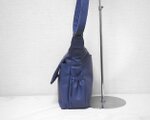 縦型の男女どちらでも持てるショルダーバッグで 小分けの収納が多く本体内部も広く箱型に作っているので安定して物が入り細かく入れ分けることも出来る形です