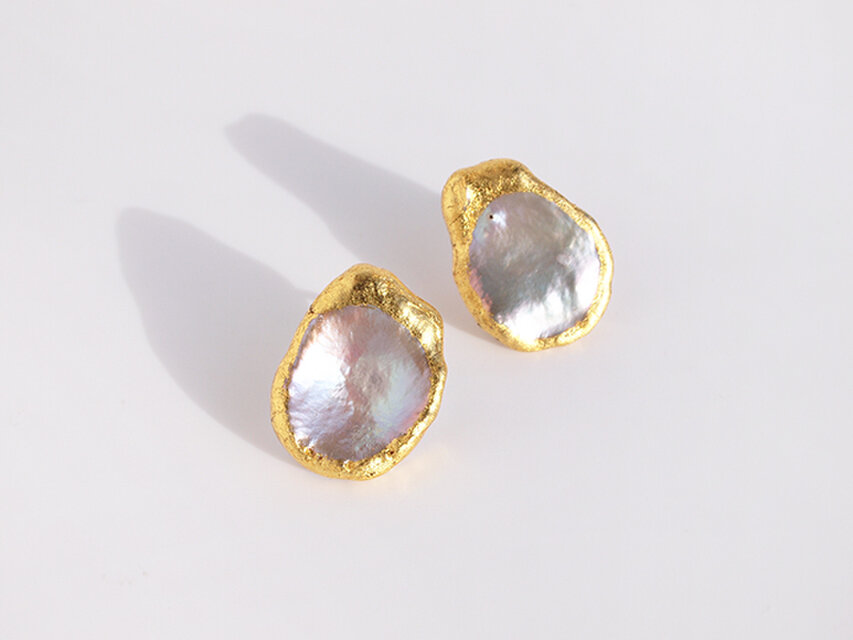 大ぶりでメタリックな輝きを持つケシパール!その輝きを引き立てるために、パールの縁にのみ金箔を貼っています。