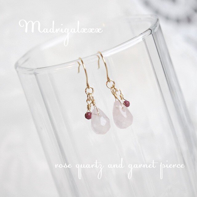 ローズクォーツと小さなガーネットを使用したピアスです。