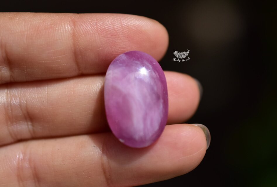 ピンク色のルースの中にバラの花びらのように折り重なっている模様が特徴的。