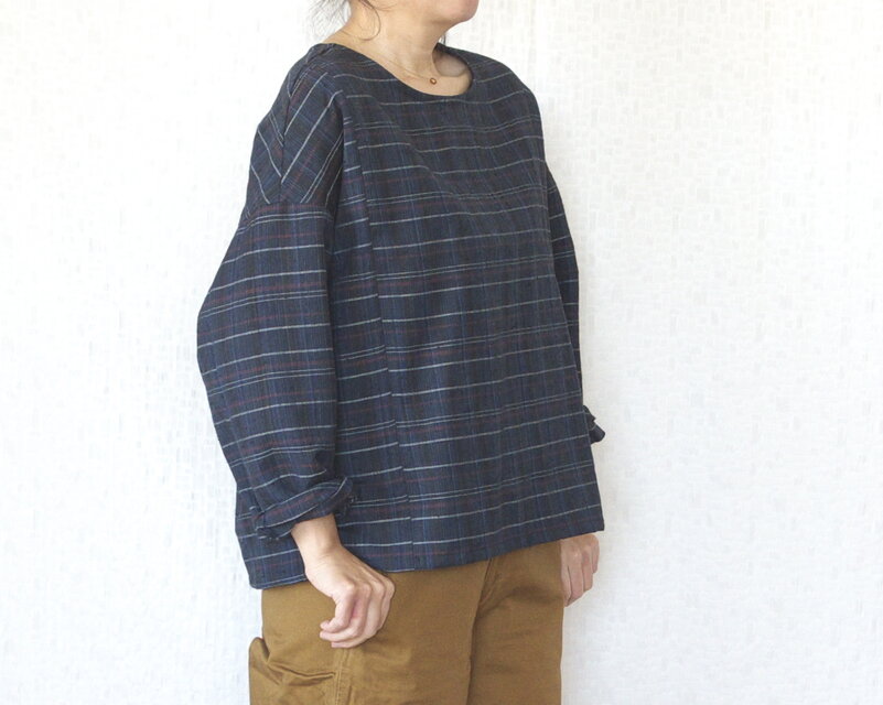 薄手のウールですが、中にたくさん着こんでももぞもぞしませんので、セーター感覚で着ていただけるプルオーバーです。