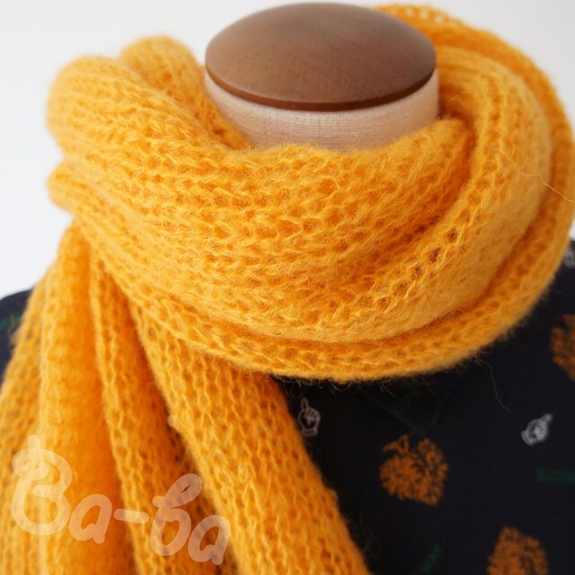 毛100%毛糸(毛70%、モヘヤ30%/オレンジ色)