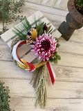 新年にふさわしい縁起が良いものを使用したしめ縄飾りです。