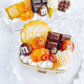 ビスケット、ソフトクリーム、かじりかけチョコ、くまグミ、mチョコを乗せました