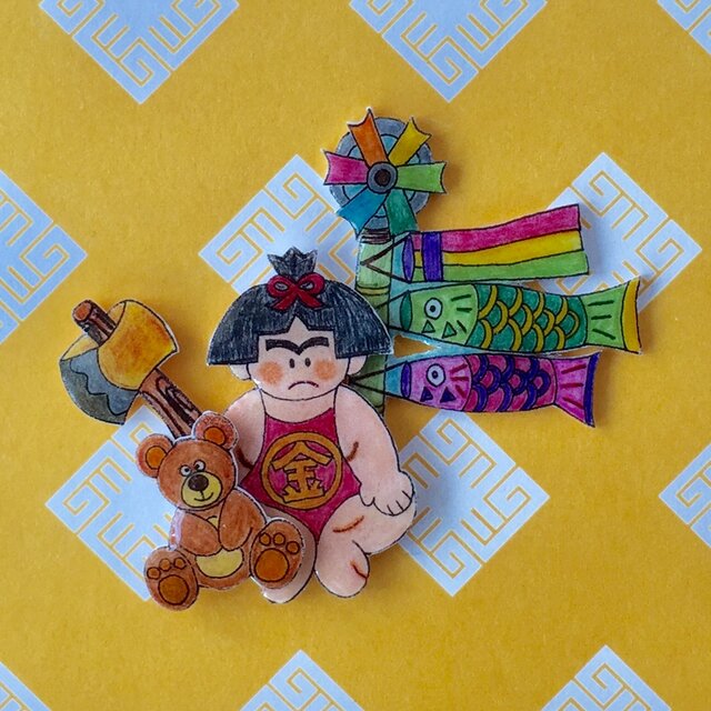金太にまつわるアレやコレや…気軽に飾れるものが有ればと、ブローチと掛け軸を作りました。