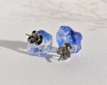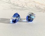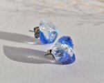 天然石や鉱石、原石のような石のカタチと、やさしい色合いが特徴のガラスのピアス/イヤリングです。