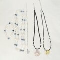 本真珠と天然石を使ったネックレスとブレスレット、揺れるキュービックジルコニアのネックレスのジュエリー5点セットです。