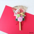 小さくても本格的なミニ熊手に、パステル系の色々な小花と扇を合わせました。