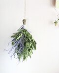 ハーブ畑で育てたユーカリパルブラ、ラベンダー、ロシアンセージなどを使った、シンプルでグリーンなドライフラワースワッグです。