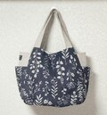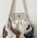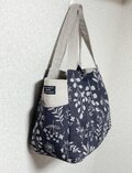 持ち手以外の部分にはすべて芯地を使用してしっかりと仕上げています。持ち手も生地を4枚重ねにして、丈夫に仕上げています。持ち手は長めにしていますので、肩掛けも可能です。
