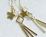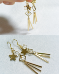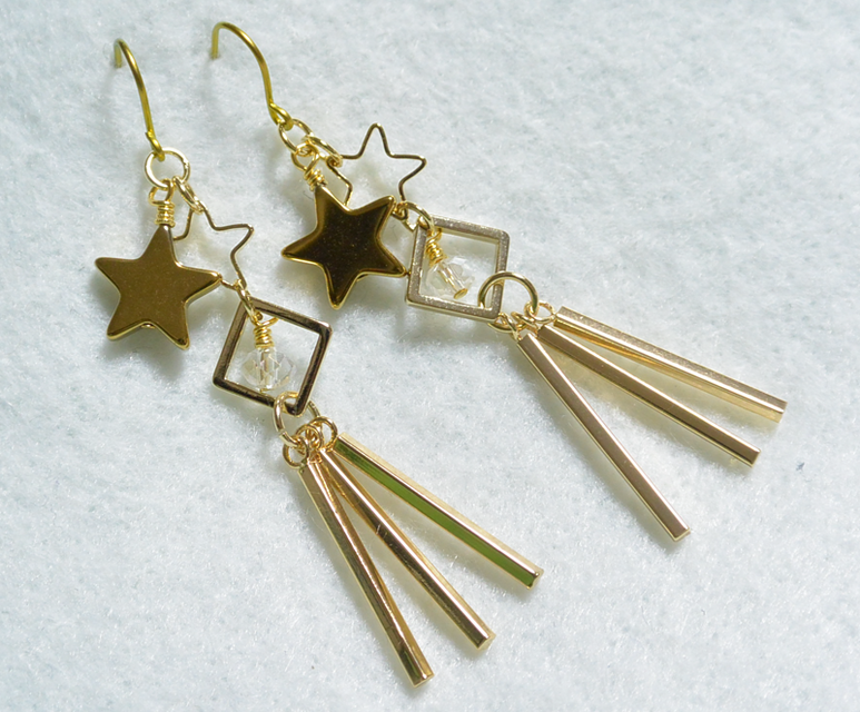 キラキラした気持ちになりたくて、ゴールドヘマタイトの星をベースにシャンデリアピアスを作りました。シャラシャラとお耳元で揺れて可愛いです。