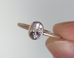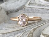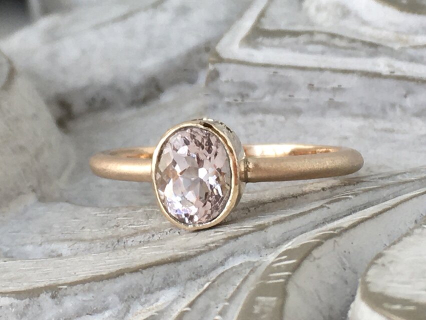 うっすら淡いピンク色のモルガナイトを、艶消しの柔らかい輝きのゴールドリングに乗せて。