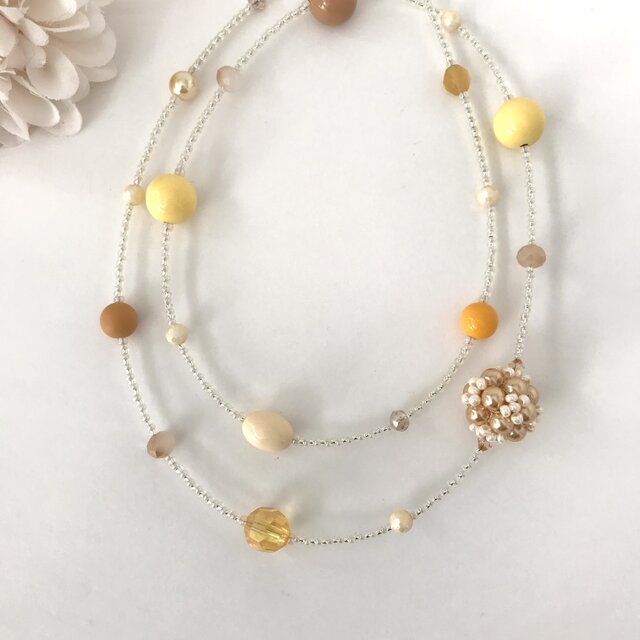 #ネックレス #ビーズ #パール #上品 #イエロー #大ぶり #マスタード #通年 #シンプル #母の日 #一連 #ポップ #デイリー #プチギフト #黄色 #通勤 #アンティーク #marigold #ロングネックレス #誕生日 #ギフト #ビーズアクセサリー #ビーズボール #クリスマス #キラキラ #パールボール #丸 #エレガント #ビーズステッチ #ビーズ編み #ビーズジュエリー #グラデーション #暖色 #ビビット