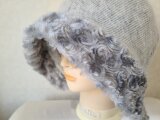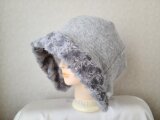 魅せる帽子☆【受注製作】ふんわり♪フェイクファーとウール混ニットのクロッシュ~ライトグレー
