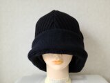 ウール100%の薄手ニットのソフトな下向きブリムで耳まで暖かくスッポリ被れます♪