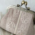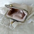 エクリュよりも少し濃い目のベージュリネンにアンティークレースをのせたがま口ポーチです