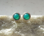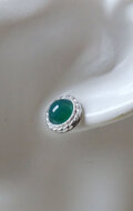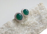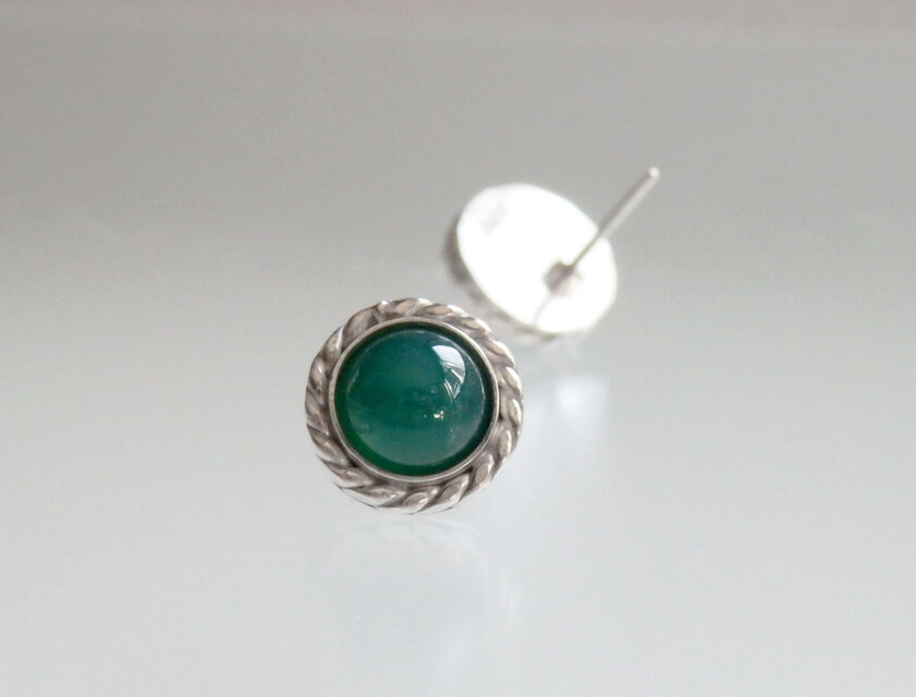 グリーンメノウの彫金スタッドピアスです。
