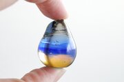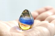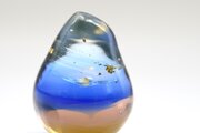 そんな光景をイメージして色選びをしたガラスを層に重ね、雫型の小さな置物を制作しました。