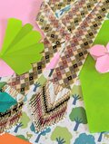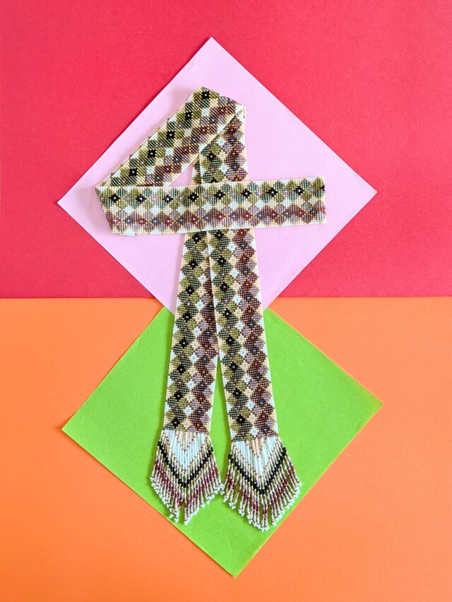 さわやかな白をベースに、緑や赤のひし形をつなげたデザインです。