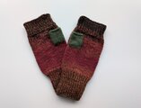 深い赤と小豆色、黒のミックス糸で編んだハンドウォーマーです。