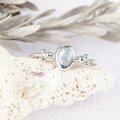 スカイブルーの美しい小粒ジルコンを粒飾りのリングに飾り付けました。