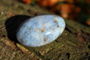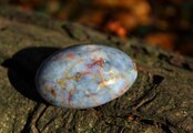 厚みのある、コロンとした形のブルーオパールのパームストーンです。