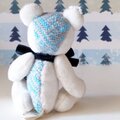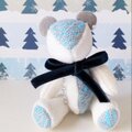 こぎん刺しのテディベアS 総刺しこぎんクマ 雪の日