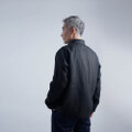 スタンドカラーの綺麗な湾曲とたくさんのボタンが印象的な