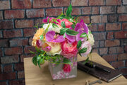 さまざまな花をふんだんに盛り込んだアレンジメントです。