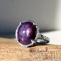 ルビーらしい六角形の結晶にほのかにスターが見える石を、透かし模様の台座にセッティングしました。