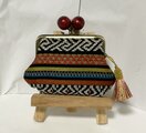 フランス生地 ジャガード織で作りました木玉親子がま口ミニ財布です