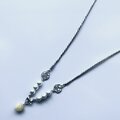 シルバーのツイストコードにパールとマットシルバーの薔薇のチャームを組み合わせ仕上げました。