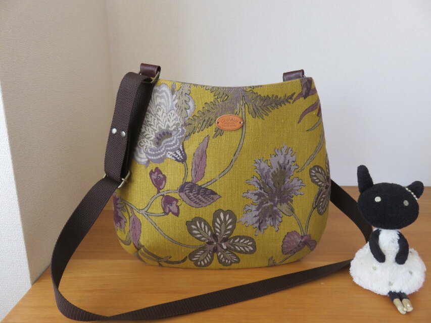 YUWAの雰囲気のあるリネン生地でおにぎり型ショルダーバッグを作りました。