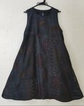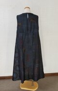 大島紬リメイク ポケット、ベルト紐付き裾幅たっぷりパッチワークワンピース