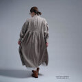 【wafu】Linen Dress レイズド・ネックライン ワンピース / 空五倍子色(うつぶしいろ) a048f-ubs1