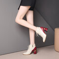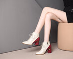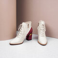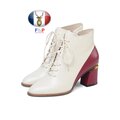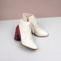 オーバルトゥハラコレザーコンビ二色レースアップショートブーツ筒丈11cm全2色