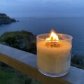 ●耐熱ガラスですが同じ場所に炎が当たり続けると割れる可能性があります。芯をカットして火力調節をしてください。蝋が残り3mmくらいになったら使用をやめてください。