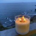 ●パチパチ音が全く出ない場合は、消火し蝋が固まっている状態にして、芯が浸るくらいの水をカップに入れて数分〜数時間程芯に水を染み込ませてください。水を捨ててから点火してください。