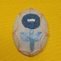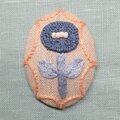 サーモンピンクの地に黒い花の刺繍、ありそうでなかったこの色のとりあわせ、すてきなブローチでした。