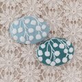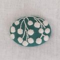 深みのあるグリーンのリネン地に北欧風の素朴で可愛らしいデザインの木の実を手刺繍しました。