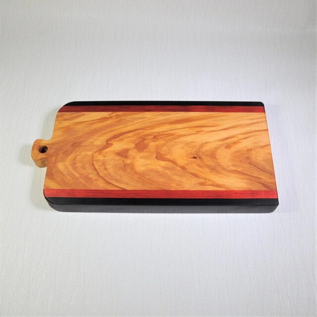 オリーブウッドとレッドハート、インド黒檀を材料としたカッティングボードです。