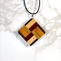 六種の色味が異なる木を細かく切り出した後、三色づつセットにして貼り合わせます。