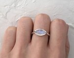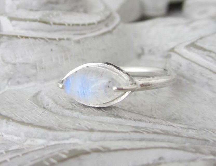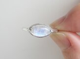 今回は、マーキス型のつるんとしたムーンストーンの両脇を、シンプルな爪留めでスッキリ仕上げました。
