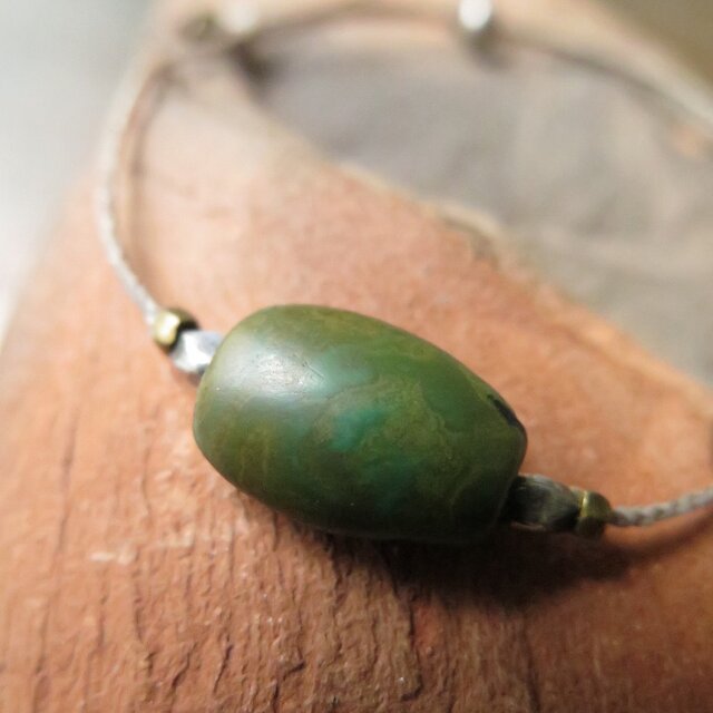 アンティーク チベタンターコイズ 渋緑 + 銀&真鍮 茶鼠 ブレスレット 百世 momotose(東)